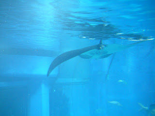 The next day we went to Osaka to go to the aquarium which was really really cool! I should of known it would be so busy though because it was a school holiday, but i didn't think and it was packed to the brim and unmoveable. But when we did get to move we also got to see things like these huge manta rays, and a really big shark, and lots of really beautiful jelly fish, and jellyish octopus that suction cup walked themselves along the window panes, and these really cool huge spidery looking artic crabs that were like dinosaurs from your imagination or something incredible like that. After we explored the auqarium i got lost taking mom and aaron to the area where i like to shop and i think they probably got pretty fed up with me always getting them lost and we made it and i showed aaron the bape store. then we went to namba which is bigger than life and had dinner in the arcade and headed back home.